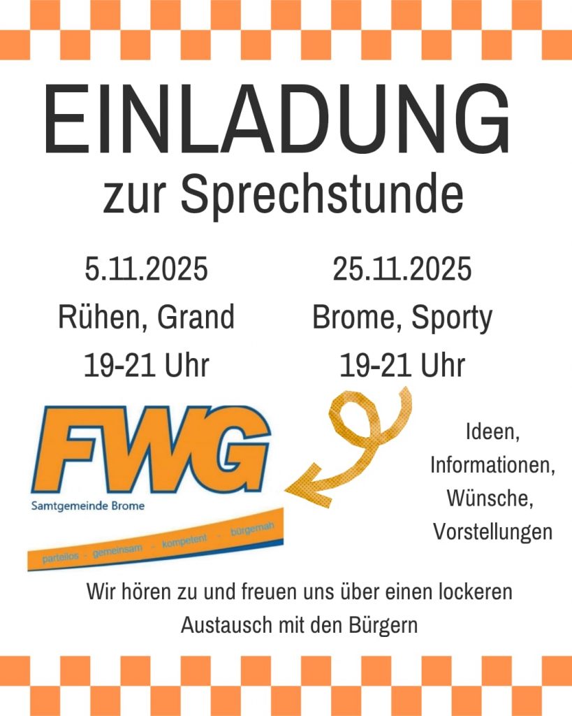 Sprechen Sie uns einfach an, persönlich oder per Mail an info@fwg-brome.de